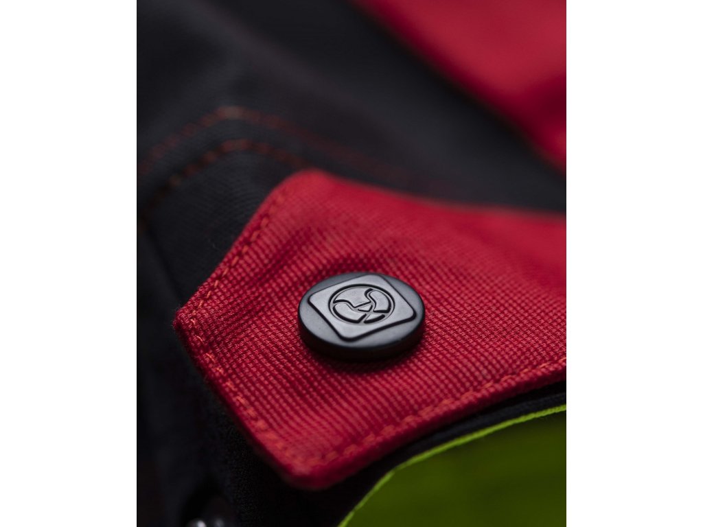 - zvýšenou viditelnost uživatele zajišťují reflexní pásky umístěné na předním i zadním dílu a hi-vis doplňky