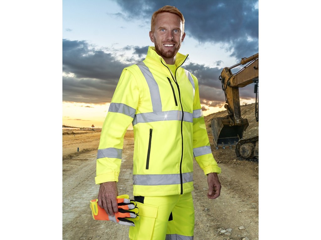 Softshellová bunda HI-VIZ se maximálně přizpůsobí vám i rozmarům počasí. Nemusíte dělat kompromisy ani kombinovat několik druhů oblečení a bezpečnostních doplňků. HI-VIZ efektivně spojuje veškeré nároky do jediného kousku oblečení. Důležitá je vaše viditelnost. Reflexní pruhy okamžitě reagují i na minimální dopad světla. Pruhy jsou našité na hrudní část, bederní a další pásky vedou po obvodu paží a zápěstí. Upozorní na vás s dostatečným předstihem i za špatných podmínek, jako je soumrak, mlha nebo tma.