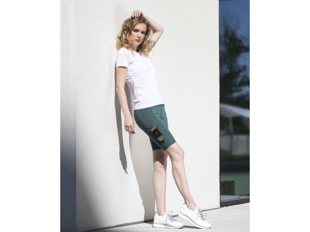 Dámské bikershorts legíny se zvýšeným zesíleným pasem, vyvinuté speciálně pro ženy. Díky technologii širšího opasku perfektně sedí na postavě, zatímco praktické kapsy v bočním švu umožňují pohodlné uložení drobností. Počesaný nylon je lehký, prodyšný, příjemný na dotek a maximálně přizpůsobivý. Legíny jsou skvělou volbou pro sportovní aktivity i volný čas.
