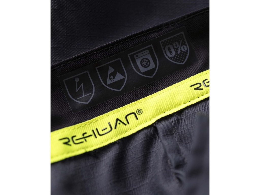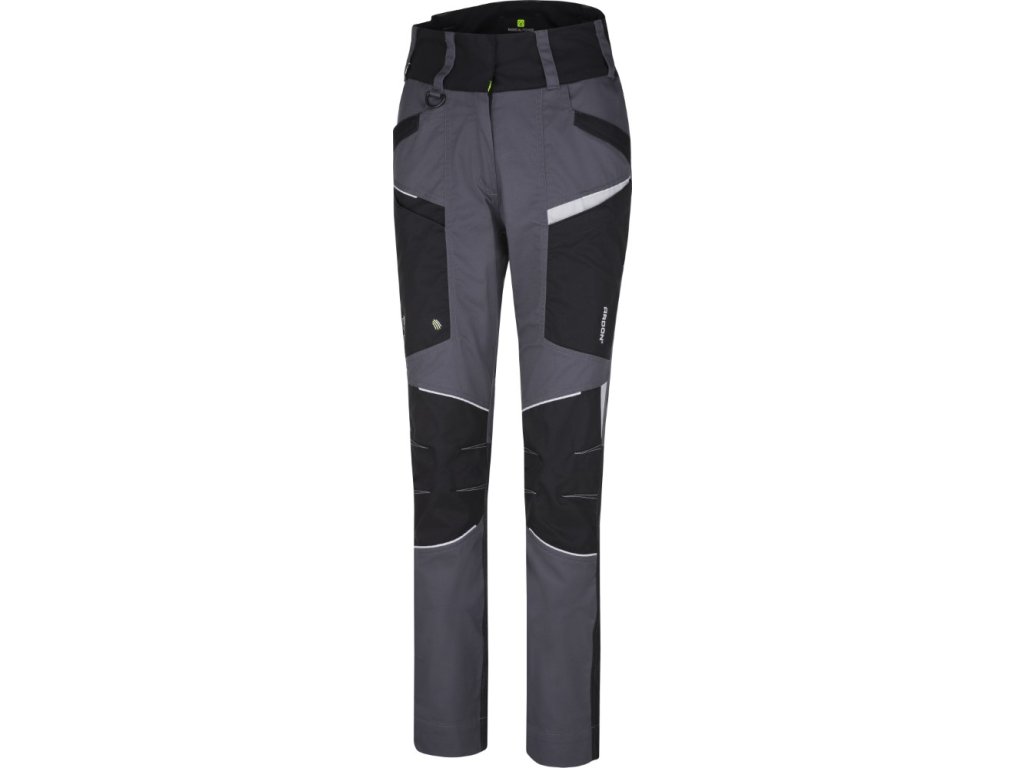 Dámské montérkové kalhoty do pasu certifikované dle norem ČSN EN ISO 13688, ČSN EN ISO 1149-5 a ČSN EN 61340. Optimální gramáž zajišťuje vzdušnost a je ideální volbou pro výrobní provozy i venkovní použití. Speciální vlákno propůjčuje oděvu spolu s antistatickými vlastnostmi vysokou odolnost a pevnost. Funkční linie kapes umístěných do švů eliminuje vrstvení materiálu, design bez viditelných zipů, se skrytým knoflíkem v pase. Kalhoty mají širší opasek s elastickými vsadkami vyvinutý speciálně pro ženy, jsou vybaveny 2 průhmatovými kapsami, 2 kapsami na přední straně nohavic, 2 zadními kapsami. Zadní díl člení sedlo, pružný pasový límec umožňuje přizpůsobení obvodu pasu pro různé typy postav. Propracovaný, anatomicky tvarovaný 3D Silhouette střih COMFORT FIT s předtvarovanými koleny, oblast kolena ze zdvojeného materiálu pro vyšší odolnost. Zvýšenou viditelnost uživatele zajišťují reflexní pásky umístěné na předním i zadním dílu. Kalhoty umožňují snadné prodloužení délky o 5 cm. Oděv je bez kovových částí příslušenství, navržený pro průmyslové praní. Nekovový D kroužek na karabinu. Kompatibilní s ID card ARDON®REFIWAN®.