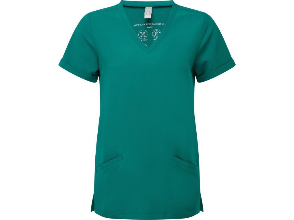 Prodyšný materiál, výstřih do V, 2 přední kapsy, boční rozparky, záševky na zádech, 4-cestný strečový materiál, odolný materiál, nemačkavý, easy care, regulující vlhkost, pratelné na 40°, lze sušit v sušičce při nízké teplotě, nelze chemicky čistit.