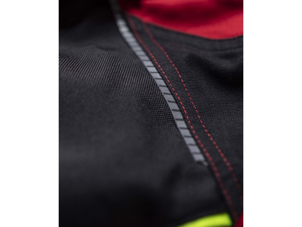 Pohodlí při každodenním nošení zvyšuje pružný pasový límec se skrytým zadním dvojitým poutkem pro usazení opasku. Několik praktických kapes je samozřejmostí. Stejně tak bezpečnostní reflexní pásky umístěné na předním i zadním dílu a hi-vis doplňky.