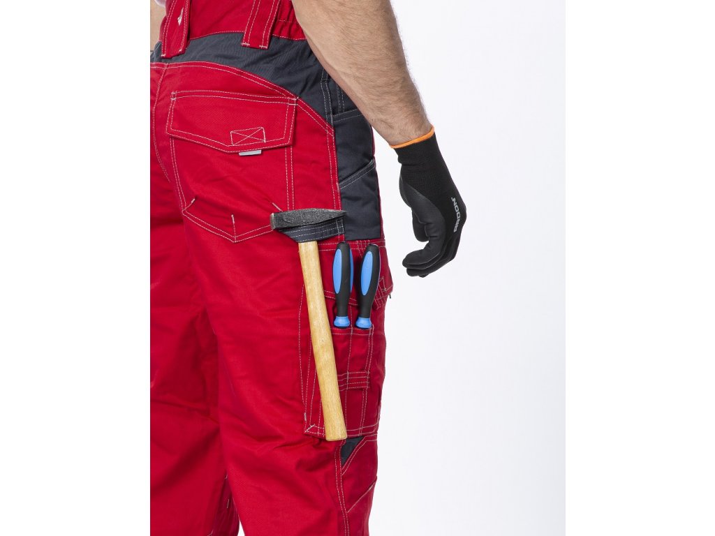 - kapsy na šroubovák, poutka na tužky, 2 kapsy na skládací metr integrované do lampasu na levé i pravé straně