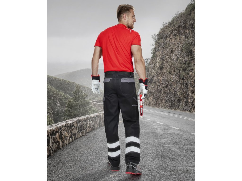 Reflexní kalhoty jsou vybavené bočními multifunkčními kapsami. Bez obav o protržení látky můžete po ruce nosit nářadí, měřící pomůcky nebo přístroje. O vaši dobrou viditelnost se postarají všité reflexní pruhy. V jakémkoliv počasí i světelných podmínkách na vás upozorní s dostatečným předstihem.