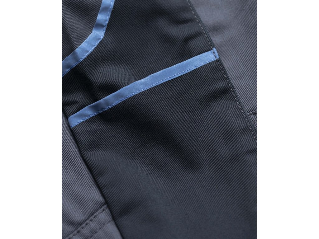 Na laclu se nachází multifunkční kapsa, do které si můžete uložit nezbytnosti jako klíče nebo mobilní telefon. Další praktické kapsy se nacházejí na levém boku a zadní části kalhot. Pokud pracujete vkleče, oceníte kapsy pro vkládání nákoleníků, které zabezpečí kalhotám delší životnost. Pro usnadnění pohybu nechybí kvalitní elastické šle. Kalhoty mají v pasu pro větší pohodlí našitou gumu a zapínají se pomocí kšand zakončených plastovými přezkami.