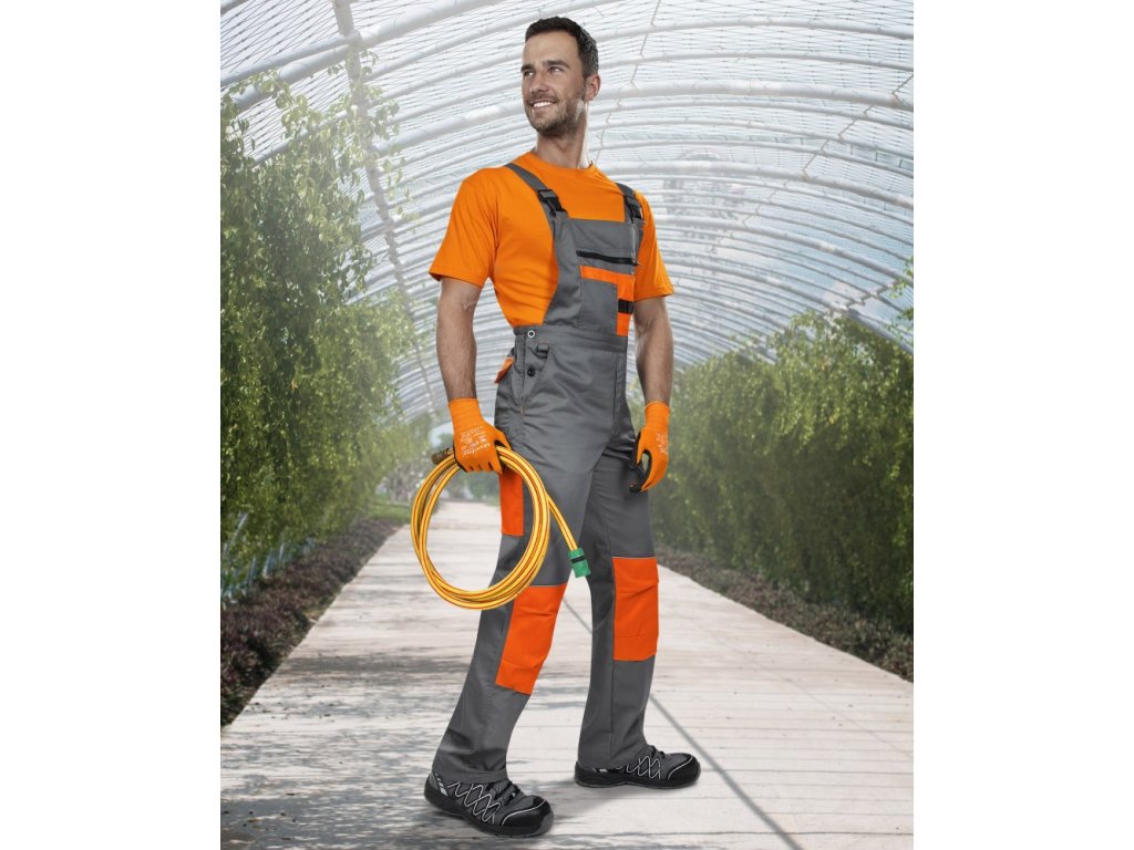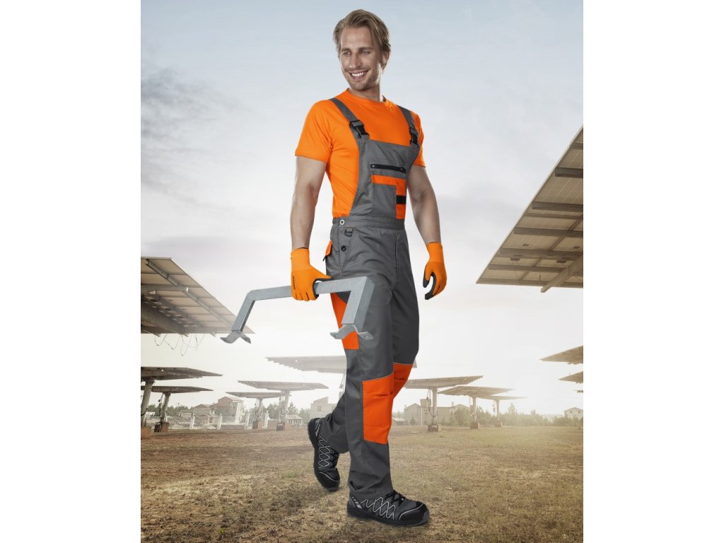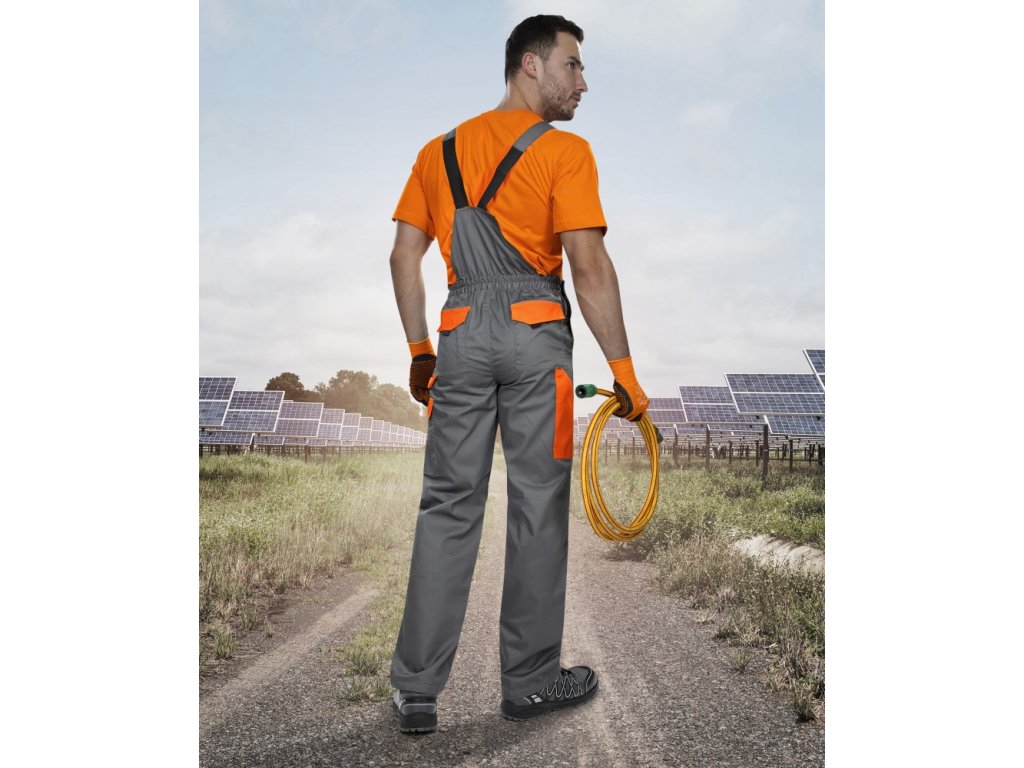 Kalhoty jsou vybaveny elastickými šlemi a pružným pasem, díky čemuž neomezují v pohybu při práci a plně se přizpůsobí šířce pasu. Na boční části disponují knoflíky, lacl lze zapnout pomocí plastových přezek. Univerzální a mužské postavě lichotivý střih dokonale padne každému.