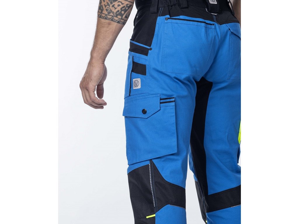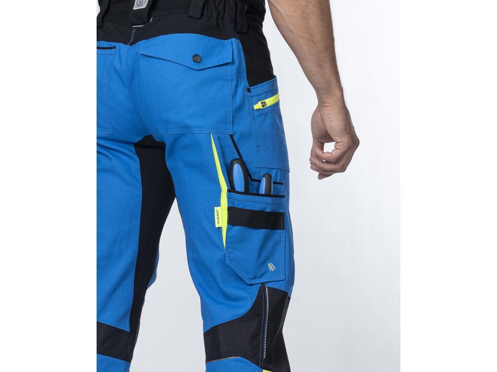 Nesmí chybět i několik praktických kapes, D kroužek pro karabiny, stejně jako bezpečnostní reflexní pásky a hi-vis doplňky. Styl i funkčnost strečových kalhot perfektně doplní pracovní blůza stejné barvy.