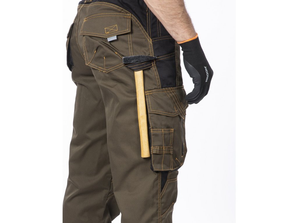 Použitý směsový materiál obsahující 60% kepru využívaného pro výrobu uniforem a pracovních oděvů prvotřídní kvality zaručuje vysokou odolnost a dlouhou životnost. Navíc v oblastech zvýšené námahy, jako je zadní díl a partie kolen, kalhoty disponují zdvojenými partiemi a sedlem. Partie kolen je kromě toho možno vyztužit ještě nákoleníky.