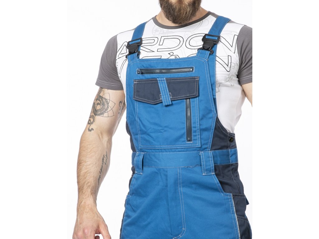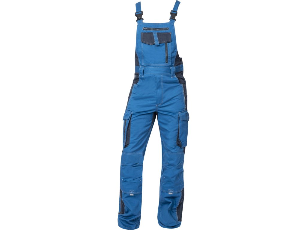 Tyto montérkové kalhoty s laclem z produktové řady VISION jsou ideální kombinací příznivé ceny a kvalitního zpracování a použitých materiálů. Montérky, které jsou na první pohled zpracovány ve sportovním stylu běžných jeansů jsou vyrobeny ze směsi bavlny, polyesteru a odolného kepru, používaného běžně na zátěžové pracovní oděvy a uniformy.