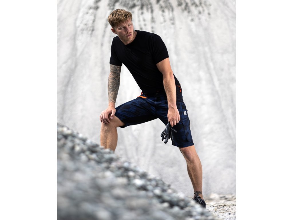 Strečové bavlněné montérkové kraťasy ze speciálního materiálu Amalytton®, který vyniká zvýšenou pevností a hladkým, jemným povrchem. Sníženou gramáž oceníte díky příjemnému pocitu při nošení. V exponovaných partiích je použitý odolný a čtyřsměrně elastický materiál Tabiflex®. Kraťasy mají vysoce funkční ergonomický 3D střih SLIM FIT, který zvýrazňuje siluetu. Jsou vybaveny pružným pasovým límcem spolu se skrytým zadním dvojitým poutkem pro pohodlné usazení opasku, vnitřní protiskluzovou páskou, D kroužkem na karabinu, 2 průhmatovými kapsami, 1 přední zipovou kapsou, 1 přední nářaďovou kapsou se širokým poutkem, na pravé nohavici je umístěna multifunkční kapsa na skládací metr, šroubovák a odlamovací nůž se širokými poutky, na levé nohavici je velká dvojitá kapsa krytá patkou na druk. Zadní díl člení sedlo a 2 kapsy, pravá zadní kapsa je krytá patkou na druk, trojité prošití v namáhaných partiích. Zvýšenou viditelnost uživatele zajišťují reflexní pásky.