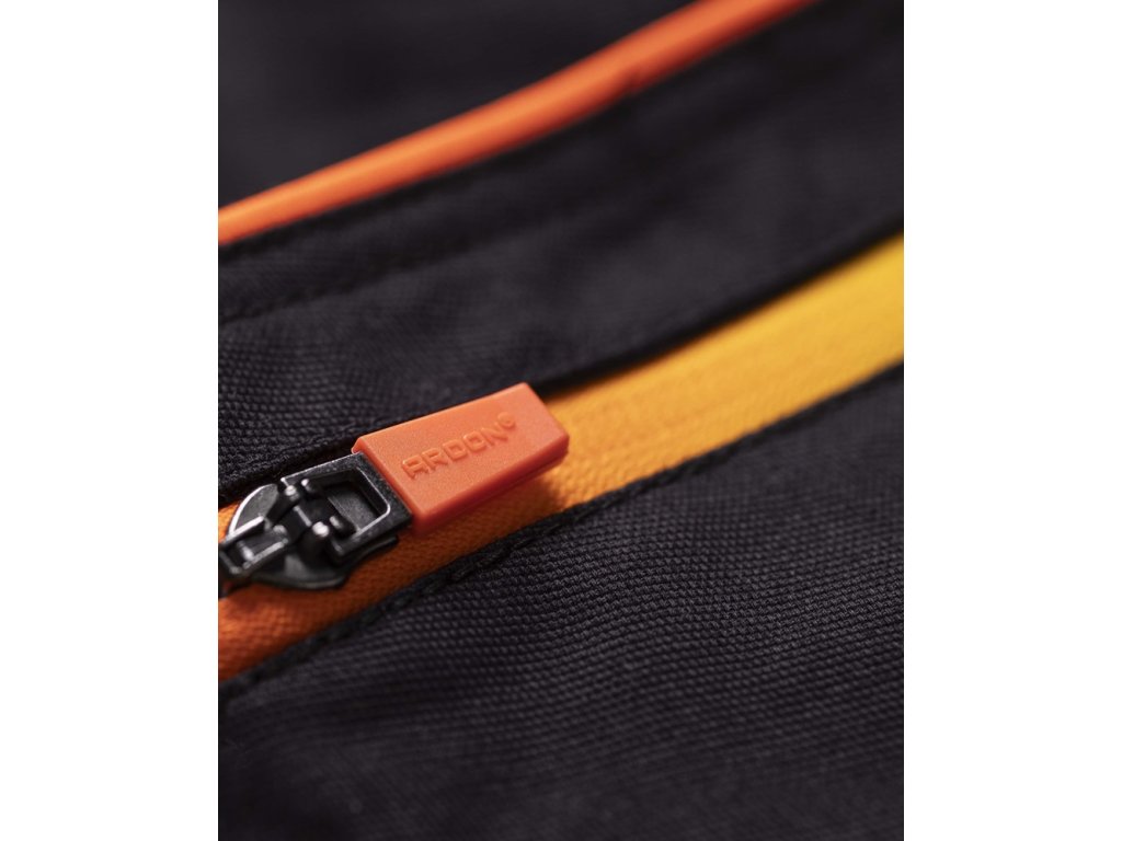 - na pravé nohavici je umístěna multifunkční kapsa na skládací metr, šroubovák a odlamovací nůž se širokými poutky, na levé nohavici je velká dvojitá kapsa krytá patkou na druk, trojité prošití v namáhaných partiích