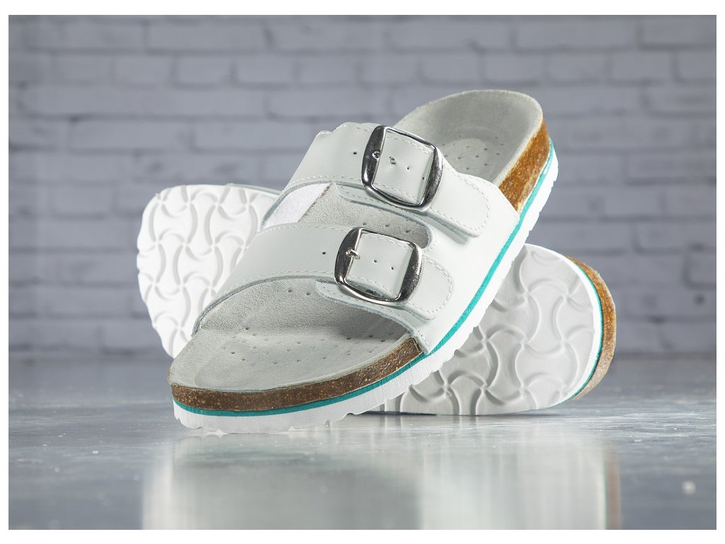 - korkové nazouváky se svrškem z materiálu action leather (štípaná kůže s povrchovou polyuretanovou úpravou)