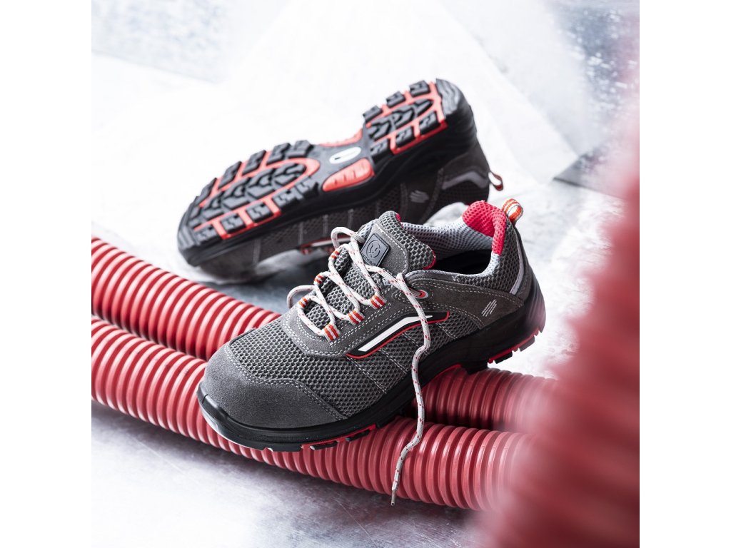 Bezpečnostní polobotka se dobře přizpůsobí, šněrováním můžete upravit šířku boty. Kevlarová stélka a ergonomické tvarování zajistí dobrou fixaci boty na noze při jakémkoliv pohybu.