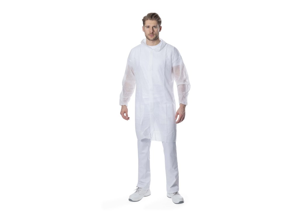 Plášť je vyrobený z polypropylenu. Materiál je dostatečně odolný vůči přímému styku s vodou, oleji i tuky. Zachovává si dostatečnou odolnost vůči mechanickému poškození nebo protržení. Je lehký a dobře skladný. Plášť je možné využít opakovaně nebo jako jednorázovou ochranu v provozech, které nošení vyžadují. Nízká cena dovoluje výrazně zlepšit hygienickou úroveň prostředí a zjednodušit obsluhu.