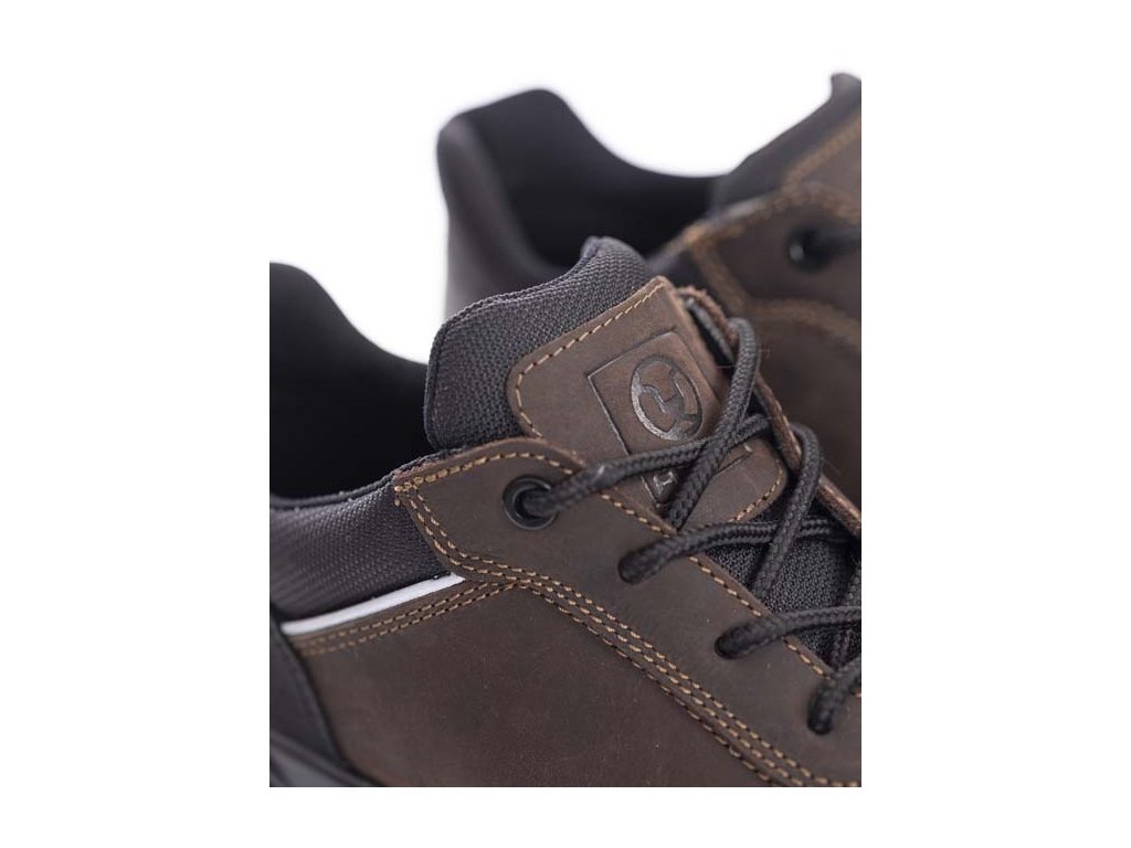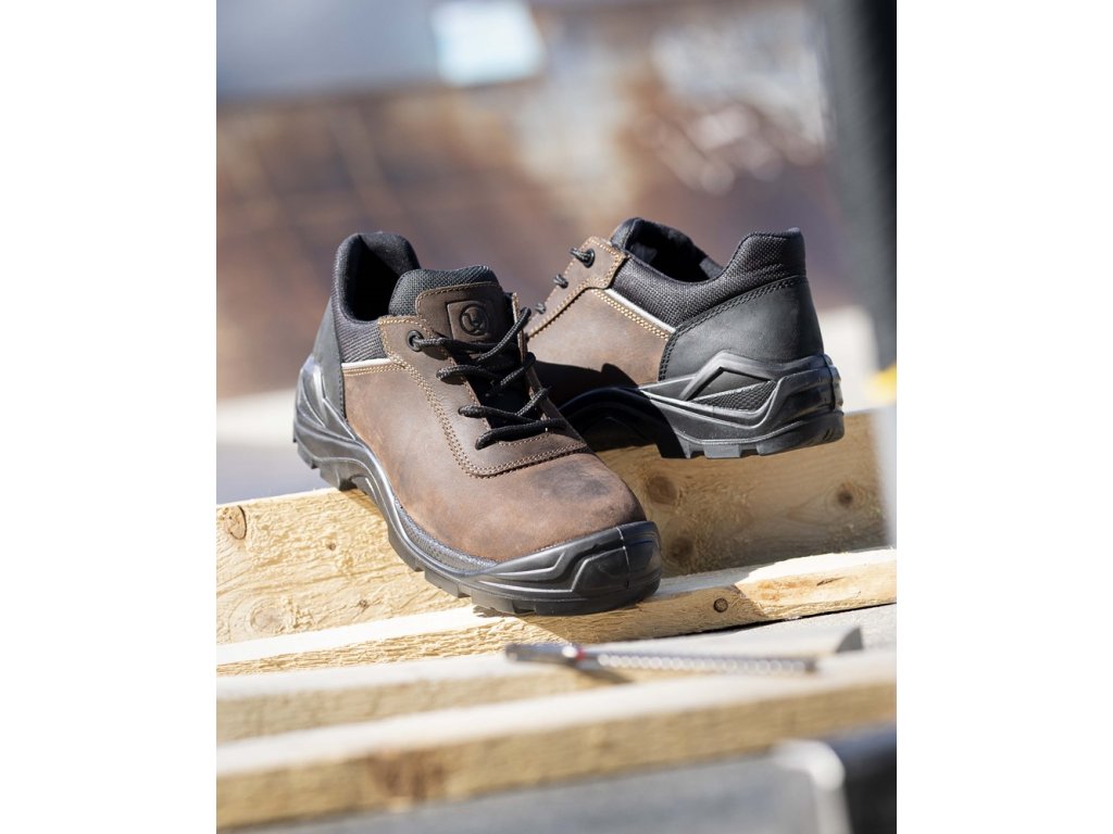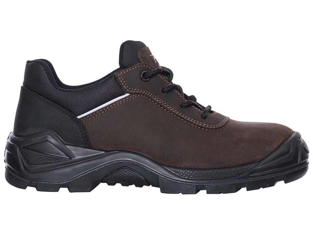 Pracovní polobotka se svrškem z lícové přírodní usně Oily nubuck. Díky zvýšené voděodolnosti vrchového materiálu je vhodná pro venkovní provozy i v náročnějších klimatických podmínkách. Obuv je opatřena stabilní nástřikovou podešví PU/PU s dostatečným vnitřním prostorem pro komfortní užívání.