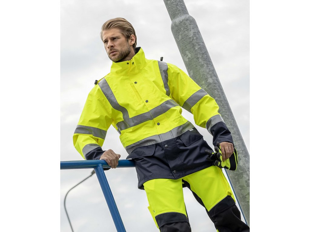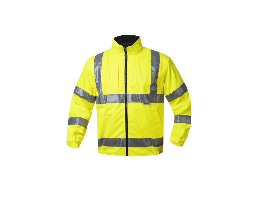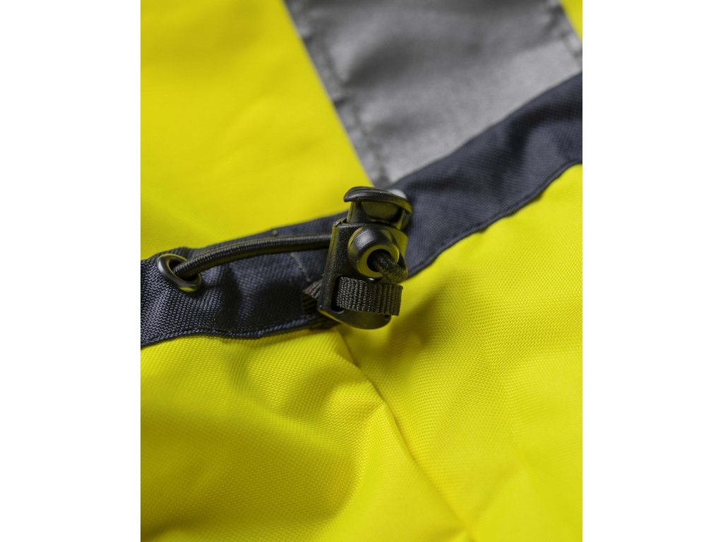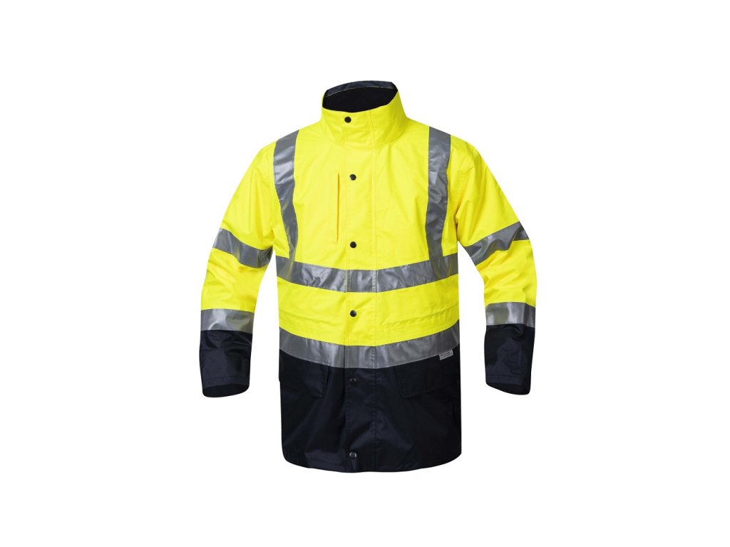 Základní výrazná žlutá barva je dobře viditelná i při špatných optických podmínkách. Bunda je navíc doplněna širokými bezpečnostními prvky. Pruhy jsou umístěné v části horní části těla i ve spodním lemu, nechybí ani po obvodu rukávů. Dvě spodní kapsy a jedna kapsa vnitřní dávají dostatečný prostor pro odložení drobností.