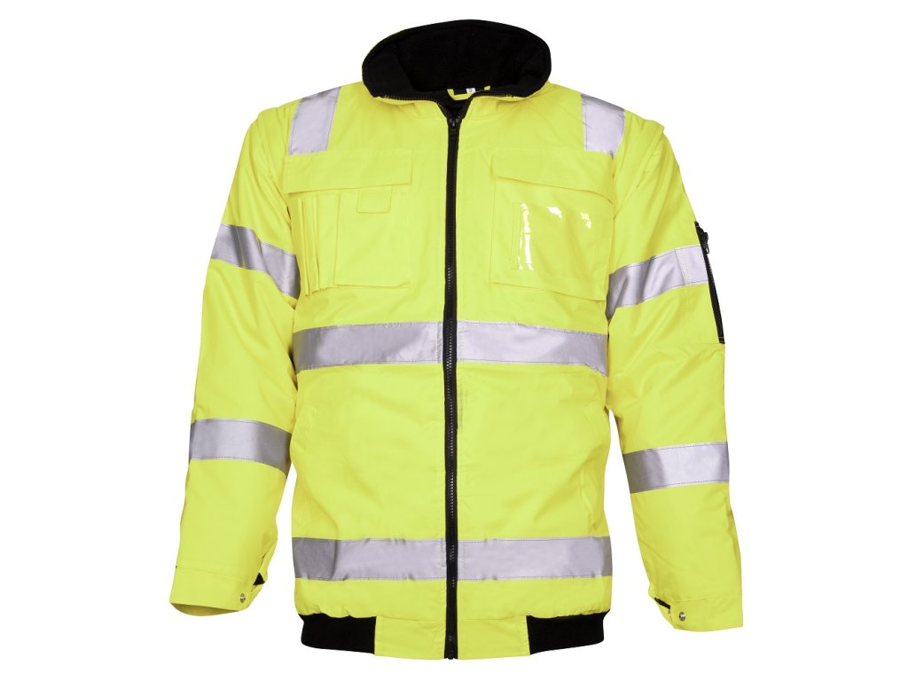 Jde o univerzální kousek pracovního oblečení, protože bunda je zateplená, takže se dá nosit i v zimních podmínkách. Naopak při teplých dnech se dají sundat rukávy a vytvořit vzdušnou reflexní výstražnou vestu. Bunda spadá do bezpečnostní třídy 3 a vesta splňuje třídu 2.