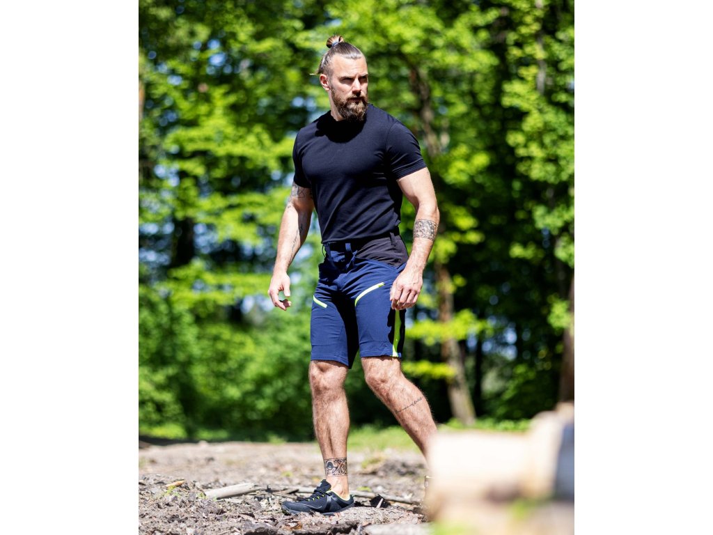 Pánské softshellové kraťasy ve štíhlém střihu SLIM FIT. Elastický softshell v kombinaci s funkčním tvarováním zajistí skvělé přizpůsobení pohybu. Kraťasy jsou vhodné i do náročných klimatických podmínek, jsou vodoodpudivé a zároveň prodyšné. Speciální vnitřní vrstva zaručuje vysoký komfort při nošení. 2 praktické zipové kapsy na přední straně a 1 zipová kapsa na zadní straně umožňují bezpečné uložení drobností. Pružný pas zajišťuje maximální pohodlí a optimální přizpůsobení obvodu. Nohavice jsou doplněny ventilačními zipy, které kromě odvodu tepla zajistí pohodlné rozšíření obvodu nohavic. Pro zvýšenou bezpečnost jsou kraťasy doplněny o reflexní 3D potisky.
