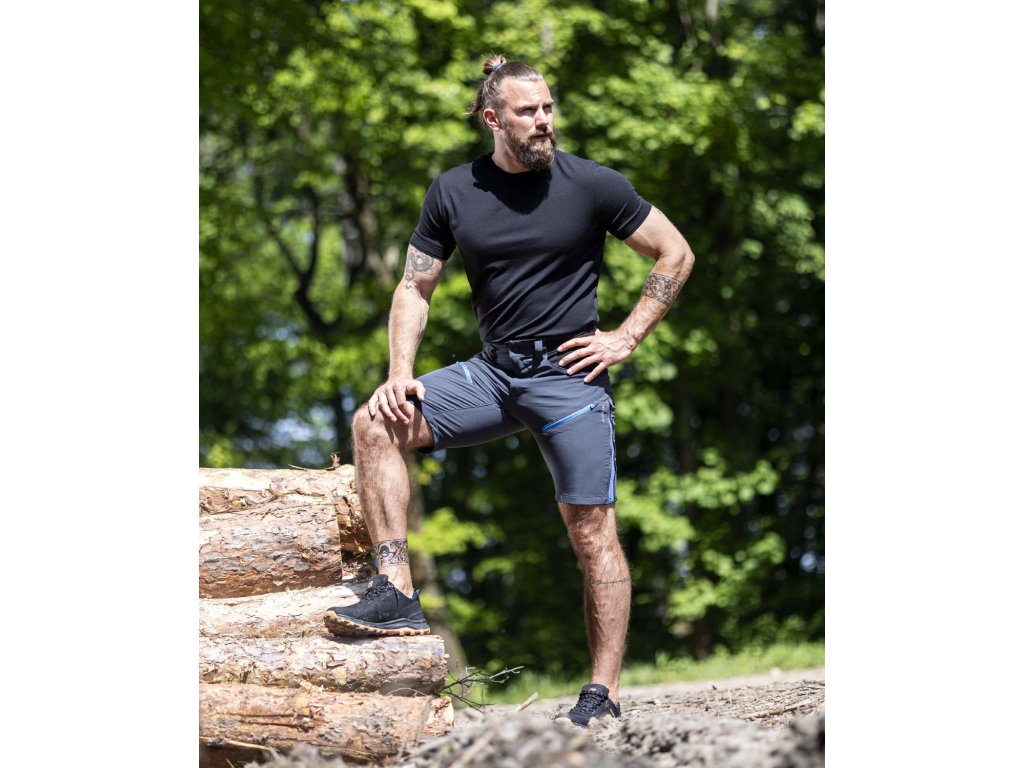 Pánské softshellové kraťasy ve štíhlém střihu SLIM FIT. Elastický softshell v kombinaci s funkčním tvarováním zajistí skvělé přizpůsobení pohybu. Kraťasy jsou vhodné i do náročných klimatických podmínek, jsou vodoodpudivé a zároveň prodyšné. Speciální vnitřní vrstva zaručuje vysoký komfort při nošení. 2 praktické zipové kapsy na přední straně a 1 zipová kapsa na zadní straně umožňují bezpečné uložení drobností. Pružný pas zajišťuje maximální pohodlí a optimální přizpůsobení obvodu. Nohavice jsou doplněny ventilačními zipy, které kromě odvodu tepla zajistí pohodlné rozšíření obvodu nohavic. Pro zvýšenou bezpečnost jsou kraťasy doplněny o reflexní 3D potisky.