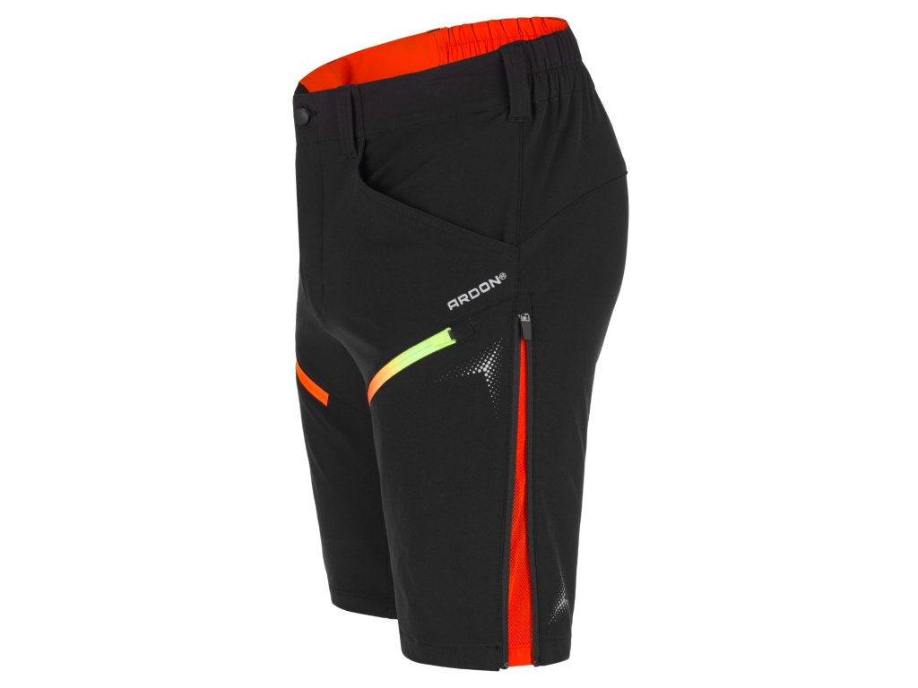Pánské softshellové kraťasy ve štíhlém střihu SLIM FIT. Elastický softshell v kombinaci s funkčním tvarováním zajistí skvělé přizpůsobení pohybu. Kraťasy jsou vhodné i do náročných klimatických podmínek, jsou vodoodpudivé a zároveň prodyšné. Speciální vnitřní vrstva zaručuje vysoký komfort při nošení. 2 praktické zipové kapsy na přední straně a 1 zipová kapsa na zadní straně umožňují bezpečné uložení drobností. Pružný pas zajišťuje maximální pohodlí a optimální přizpůsobení obvodu. Nohavice jsou doplněny ventilačními zipy, které kromě odvodu tepla zajistí pohodlné rozšíření obvodu nohavic. Pro zvýšenou bezpečnost jsou kraťasy doplněny o reflexní 3D potisky.