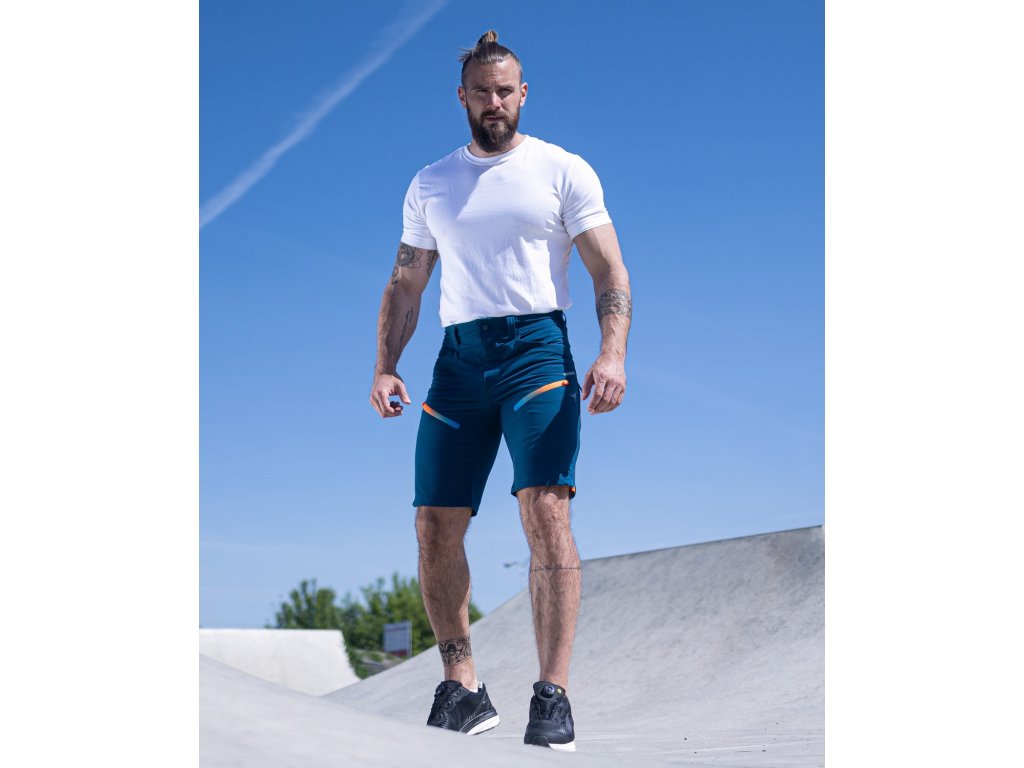 Pánské softshellové kraťasy ve štíhlém střihu SLIM FIT. Elastický softshell v kombinaci s funkčním tvarováním zajistí skvělé přizpůsobení pohybu. Kraťasy jsou vhodné i do náročných klimatických podmínek, jsou vodoodpudivé a zároveň prodyšné. Speciální vnitřní vrstva zaručuje vysoký komfort při nošení. 2 praktické zipové kapsy na přední straně a 1 zipová kapsa na zadní straně umožňují bezpečné uložení drobností. Pružný pas zajišťuje maximální pohodlí a optimální přizpůsobení obvodu. Nohavice jsou doplněny ventilačními zipy, které kromě odvodu tepla zajistí pohodlné rozšíření obvodu nohavic. Pro zvýšenou bezpečnost jsou kraťasy doplněny o reflexní 3D potisky.