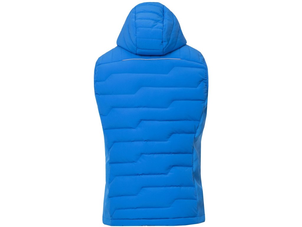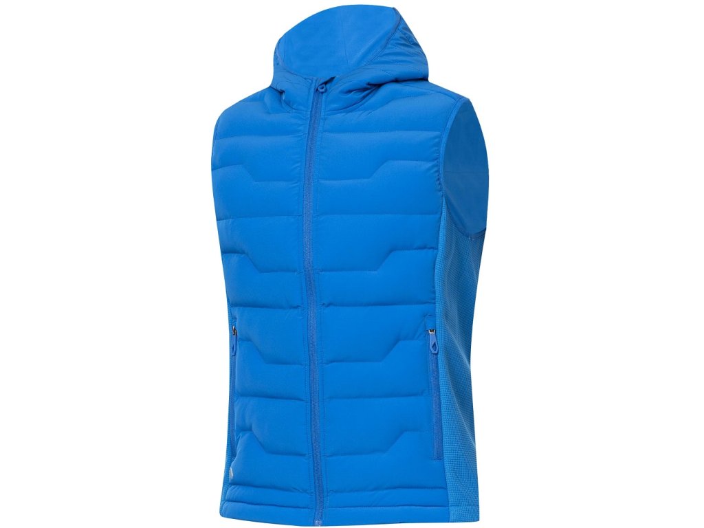 - vesta je vybavena průběžným zipem s krytkou brady, bočními zipovými kapsami, celkový design dotváří prošívaná kapuce