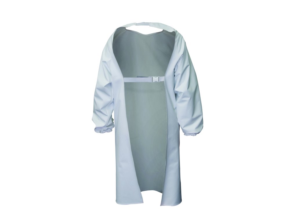 - elastické manžety, zapínání vzadu na přezku, zesílení materiálu v hrudní části