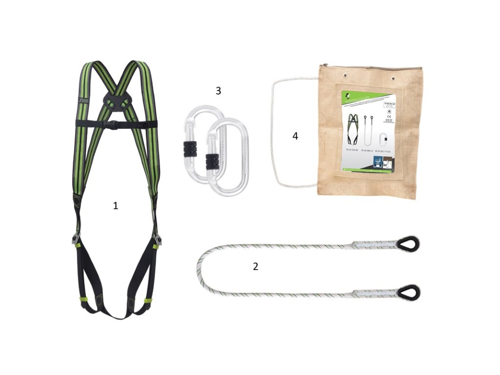 - Součástí setu je přepravní taška, celotělový postroj FA1010200 určený k zachycení pádu (samostatně neprodejné), spojovací prostředek FA4050015 (I4007), dvě karabiny FA5010117 (I4005)